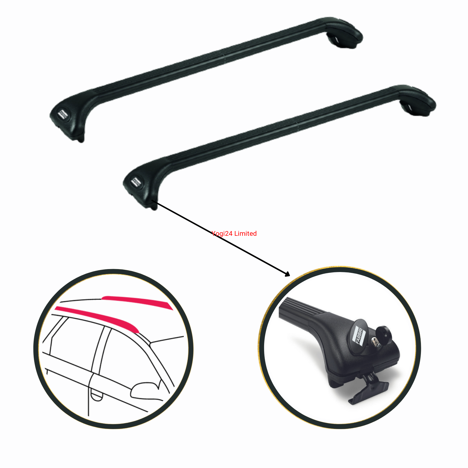 Fabbri ALU VIVA 2 - Telescopic Roof Bars - BLACK - Suitable for vehicles with flush rails