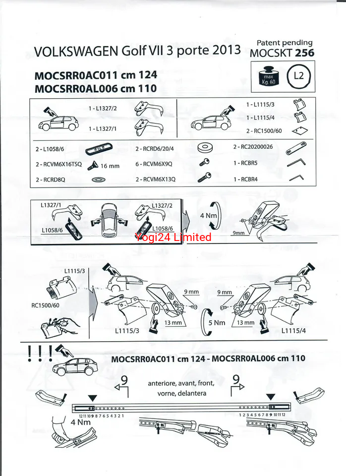 Max load: 3 Door cars 60kg