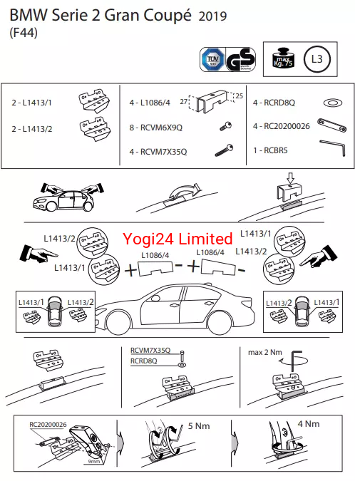 Fits are: BMW 2 series F44 Gran Coupe 2019-