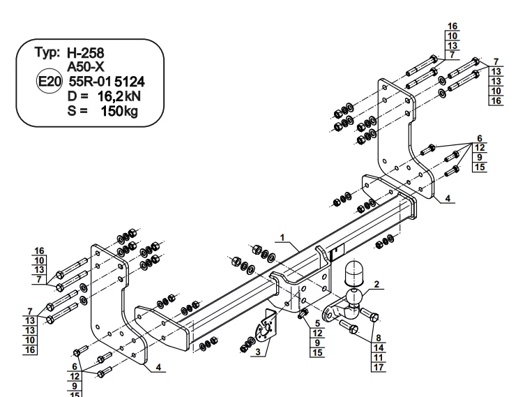 - D Value: 16.20 kN (Theoretical related force working on a ball hook)