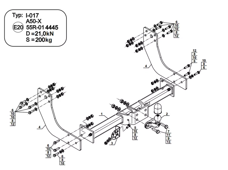 - D Value: 21.00 kN (Theoretical related force working on a ball hook)